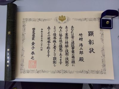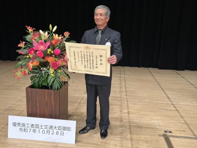 この度、令和7年度国土交通大臣顕彰の建設マスターとして