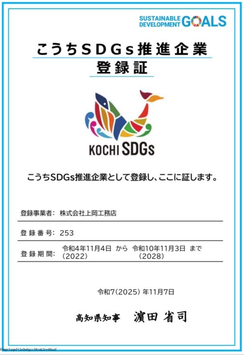 | 許可業種 | 特定建設業 高知県知事(特-4)第1317号